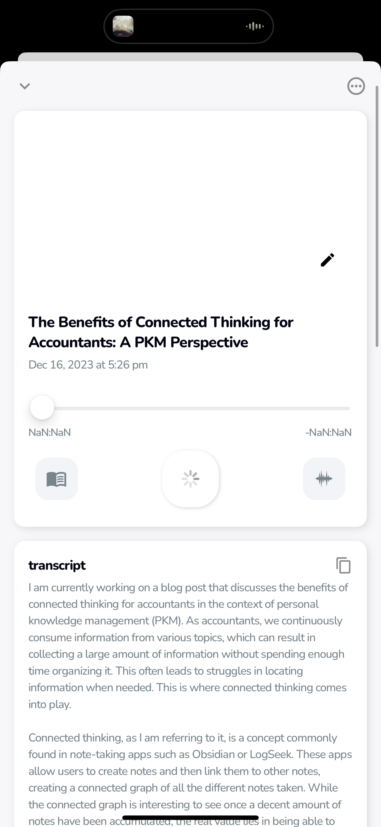 My process with VoicePal is simple. When I can, I jot down notes in Apple Reminders or Craft, and then use VoicePal to record my thoughts when I have free time. I've also recorded directly into VoicePal when the original idea struck, but I've had much better results if I jot some bullet points before I hit record.